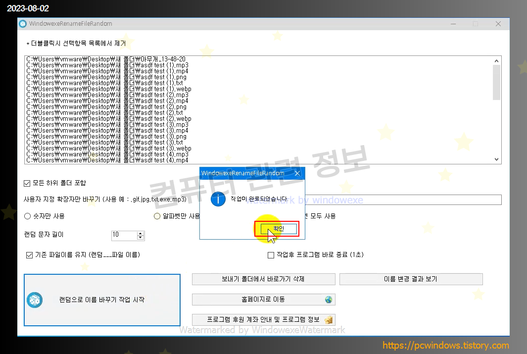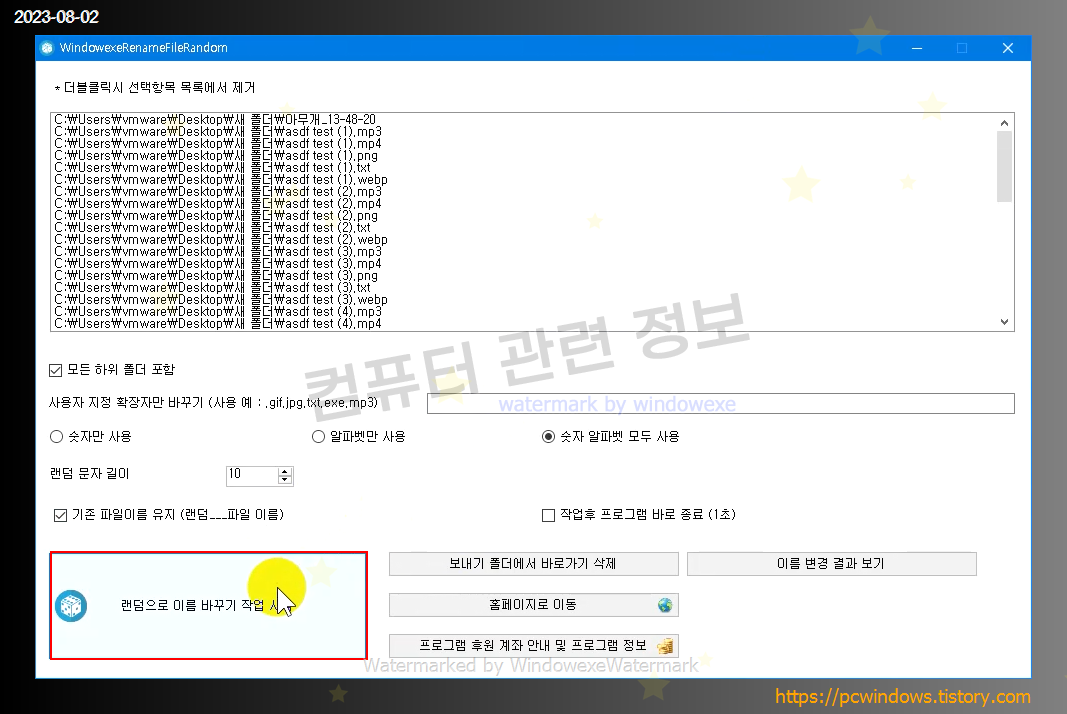 설정을 완료하였으면 하단의 랜덤으로 이름 바꾸기 작업 시작을 클릭하세요.
