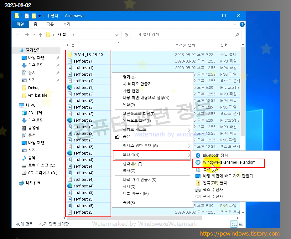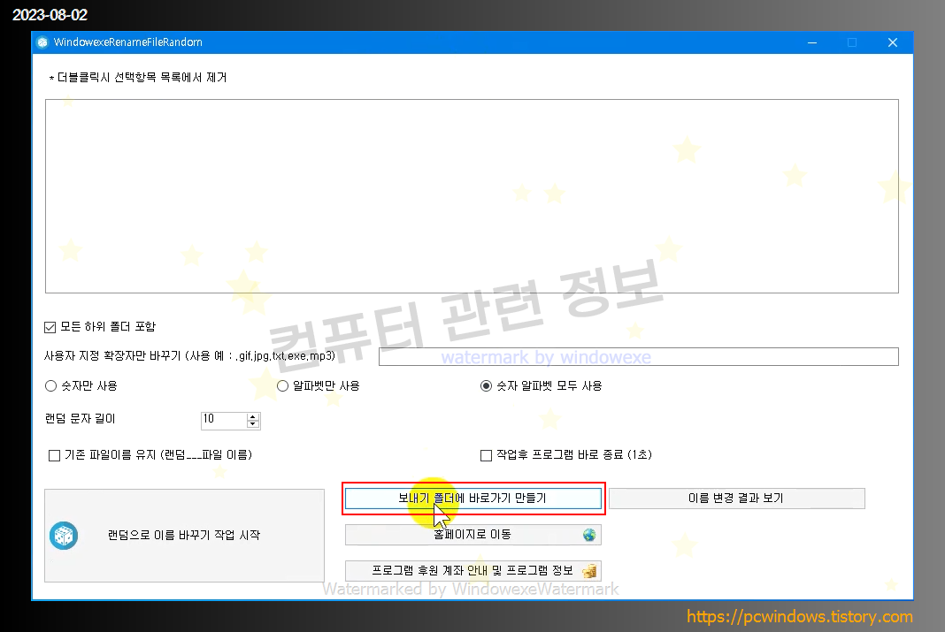 WindowexeRenameFileRandom 프로그램이 실행되면서 윈도우 탐색기에서 선택한 폴더나 파일이 추가됩니다.
