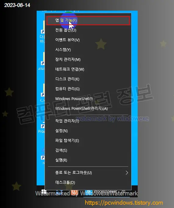 시작 - 우클릭 - 앱 및 기능 실행. (윈도우 11에서는 설치된 앱)
