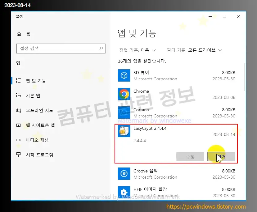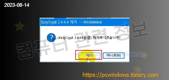 프로그램을 삭제할건지 물어보는데 예 클릭.