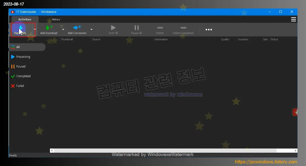 유튜브 영상의 주소를 복사하고 왼쪽 상단의 Paste URL 을 클릭하세요.