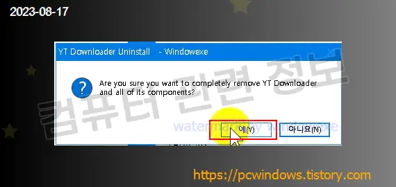 프로그램을 삭제할건지 물어보는데 예 클릭.