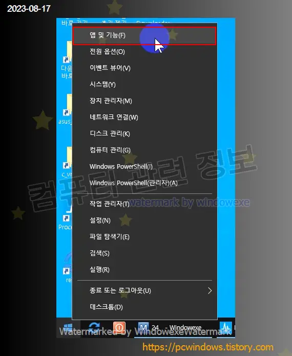 시작 - 우클릭 - 앱 및 기능 실행. (윈도우 11에서는 설치된 앱)