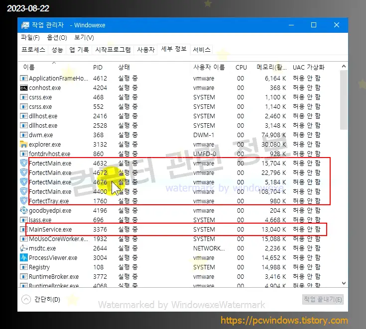 작업관리자 Fortect 프로세스입니다.