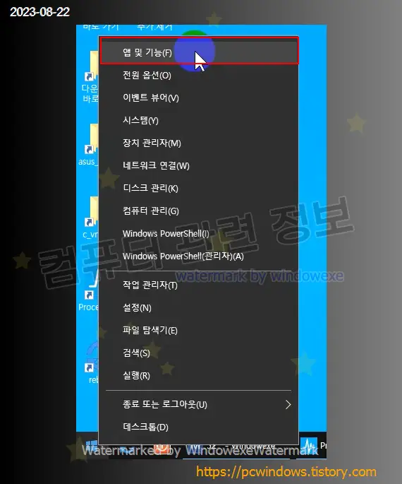 시작 - 우클릭 - 앱 및 기능 실행. (윈도우 11에서는 설치된 앱)