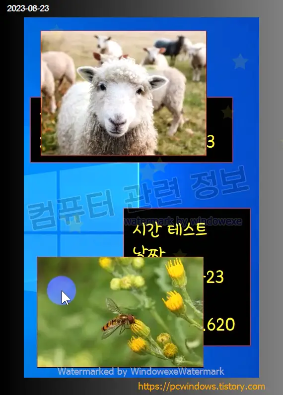 프로그램 설정화면에 있는 클립보드 복사 테스트 (글자)를 누르면 화면에 현재 시간이 표시됩니다.