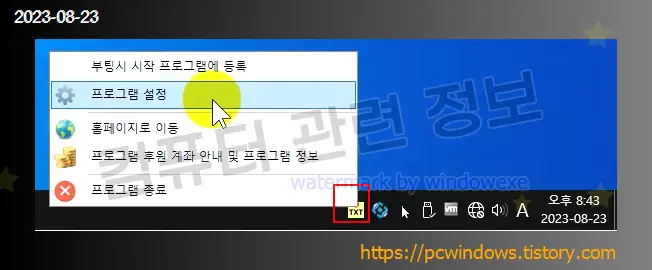 작업표시줄 오른쪽 시스템 트레이에 노란 txt 아이콘이 생깁니다.