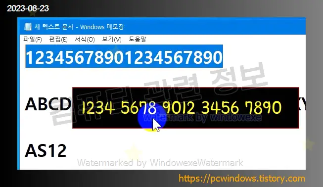 12345678901234567890 텍스트를 복사한 경우 1234 5678 9012 3456 7890 이런식으로 네자리씩 끊어서 표시됩니다.