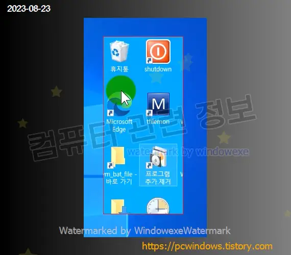 바탕화면 아이콘 영역을 다른 위치에 띄운 상태입니다.