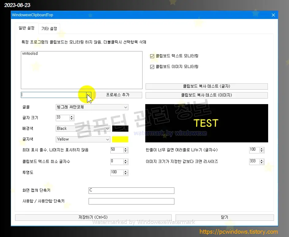 특정 프로그램 클립보드 제외, 글꼴, 글자크기, 최소 글자수, 최대 표시 줄수, 최대 이미지 크기 등을 설정할 수 있습니다.