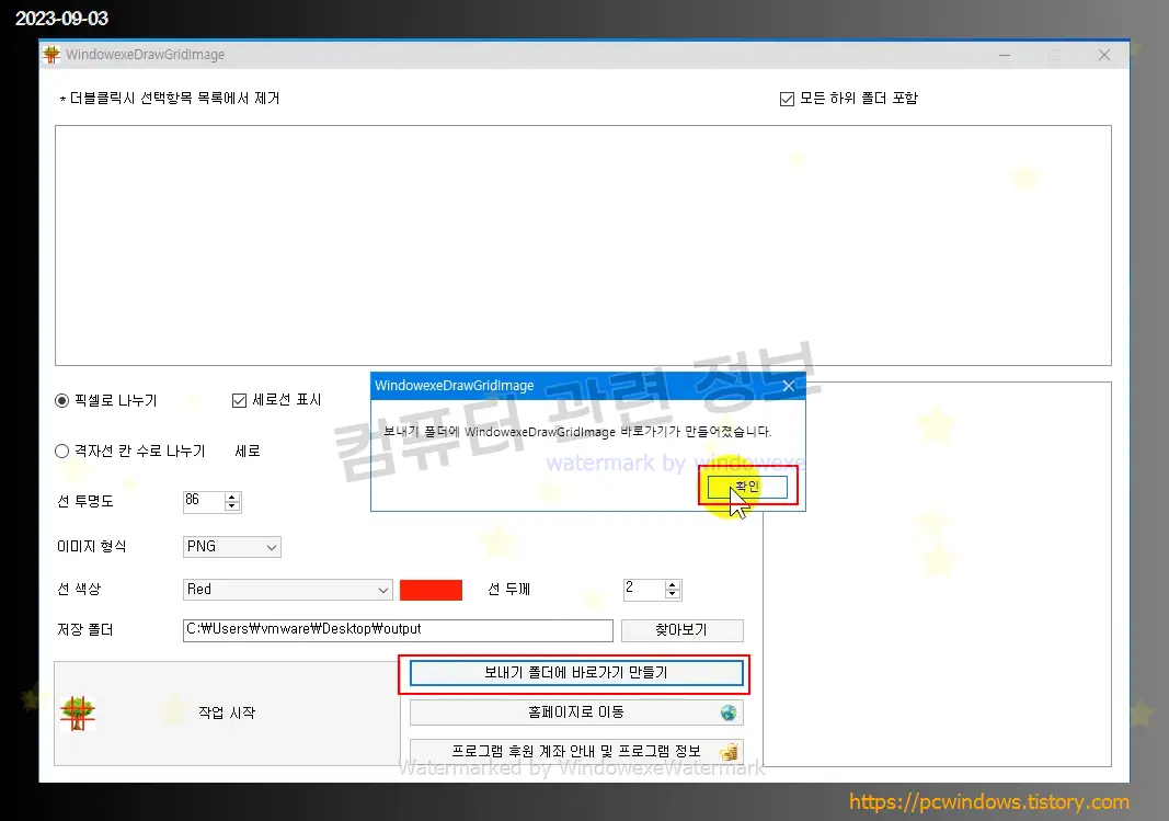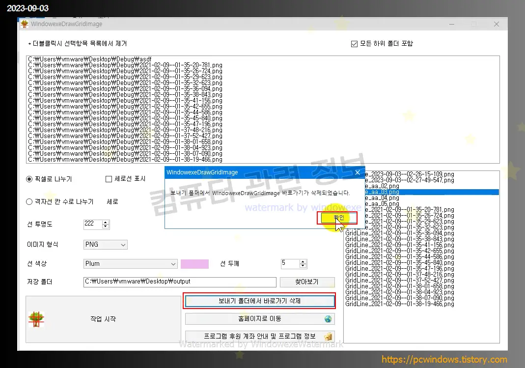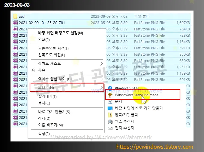 마우스 우클릭 - 보내기 - WindowexeDrawGridImage 를 클릭하세요.