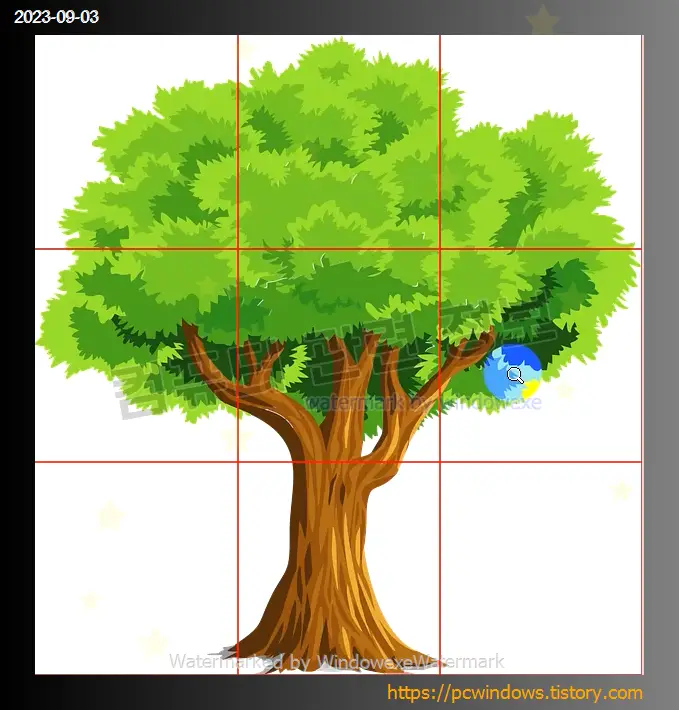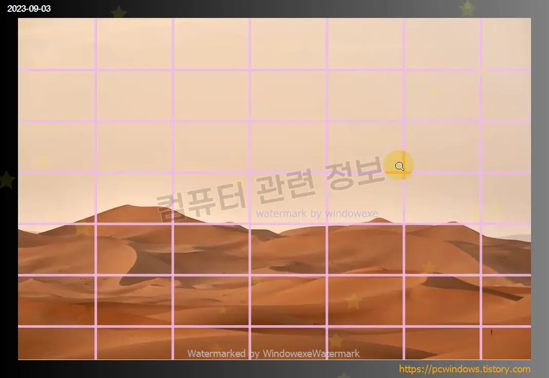 이미지 파일에 가로 세로 격자선을 따로 표시할 수도 있고, 일정한 픽셀 크기 또는 이미지 크기에 비례하게 N등분해서 표시할 수도 있습니다.