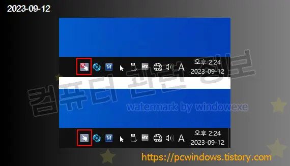 작업 표시줄 오른쪽 시스템 트레이에 손가락 커서 모양의 아이콘이 생깁니다.