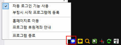 자동로그인 기능을 해제하려면 마우스 우클릭 메뉴에서 변경하세요. 처음 실행할 때 취소를 눌러도 됩니다.