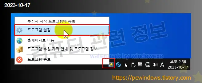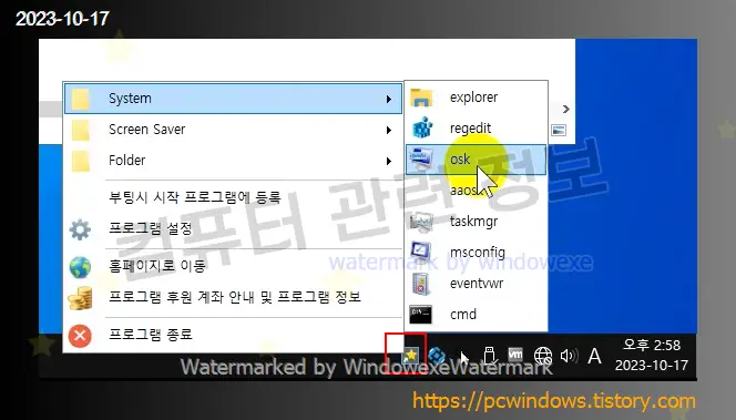 단축키를 사용하지 않고 시스템 트레이의 메뉴에서도 사용자 지정 프로그램을 간단히 실행할 수도 있습니다.