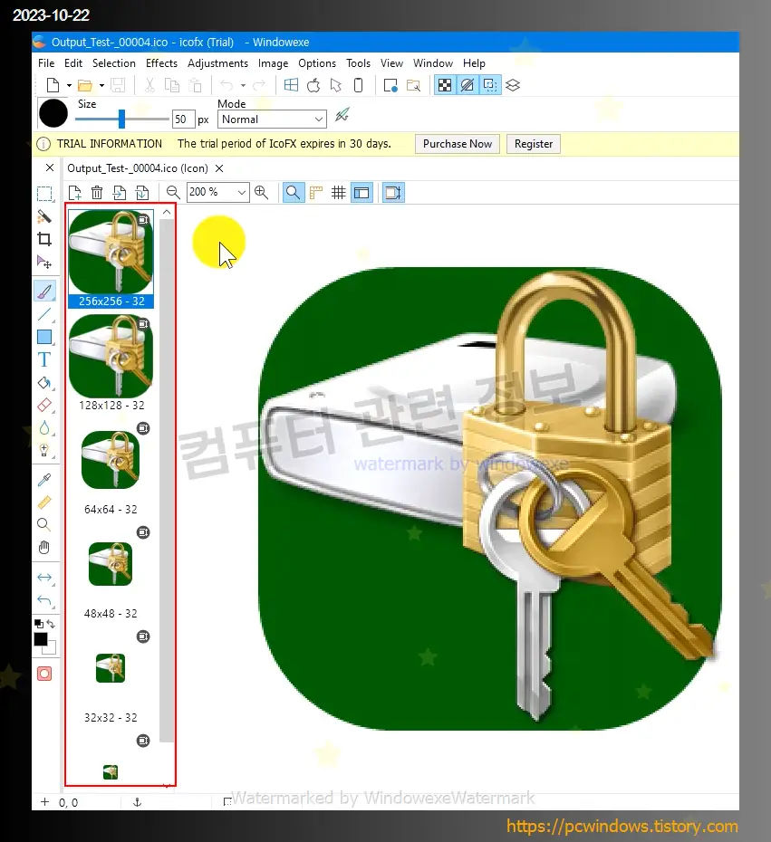 아이콘 편집 전용 프로그램을 사용해서 앞서 작업했던 아이콘 파일을 불러온 스크린샷입니다.