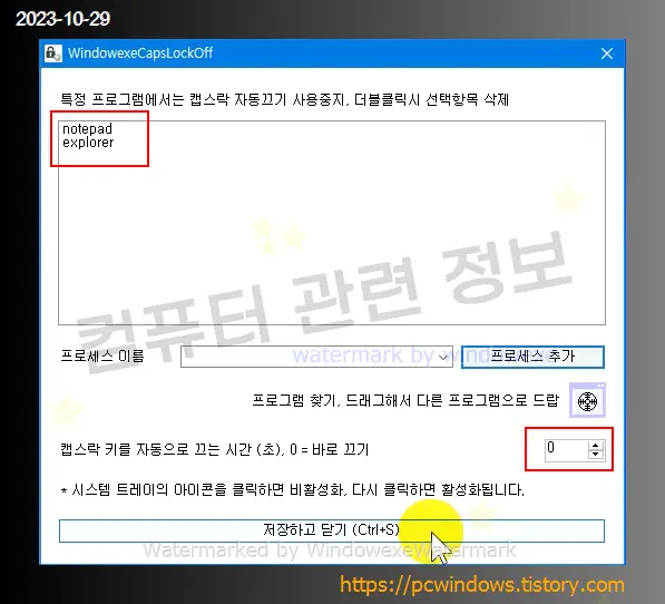 등록한 프로그램이 아닌 경우에는 캡스락 키를 자동으로 끕니다.