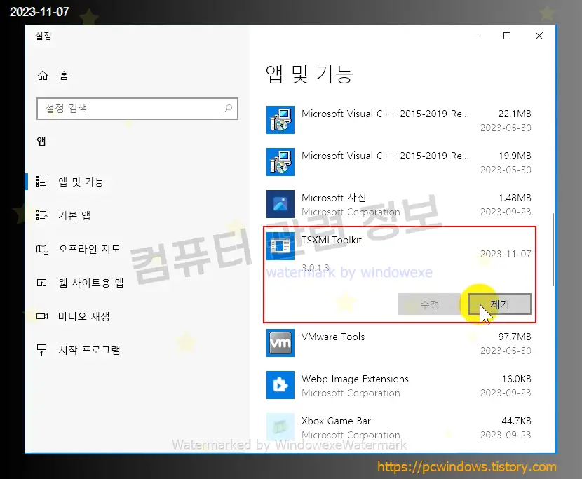 TSXMLToolkit 을 찾아서 제거 클릭