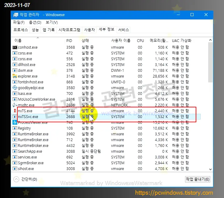 nxTSSvc.exe , nxTS.exe 프로세스는 부팅시마다 자동으로 실행됩니다.