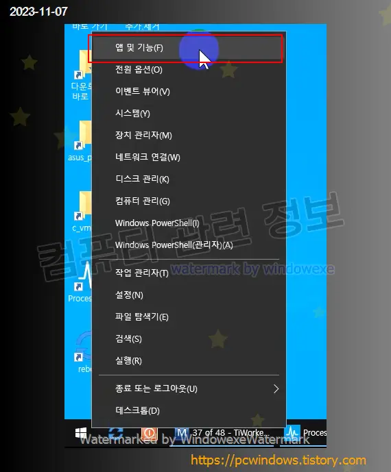 시작 - 우클릭 - 앱 및 기능 실행. (윈도우 11에서는 설치된 앱)