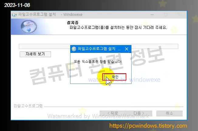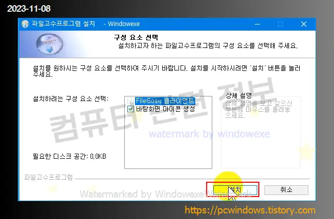 설치 클릭