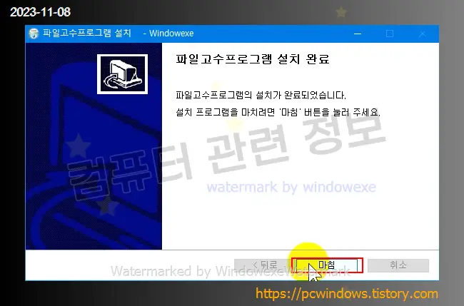 프로그램 설치가 완료되었습니다.