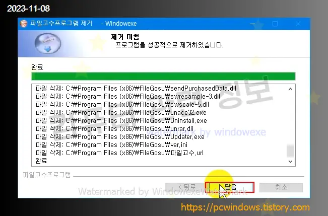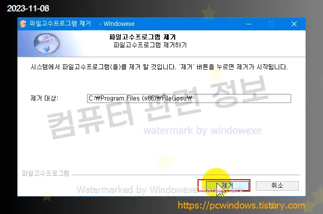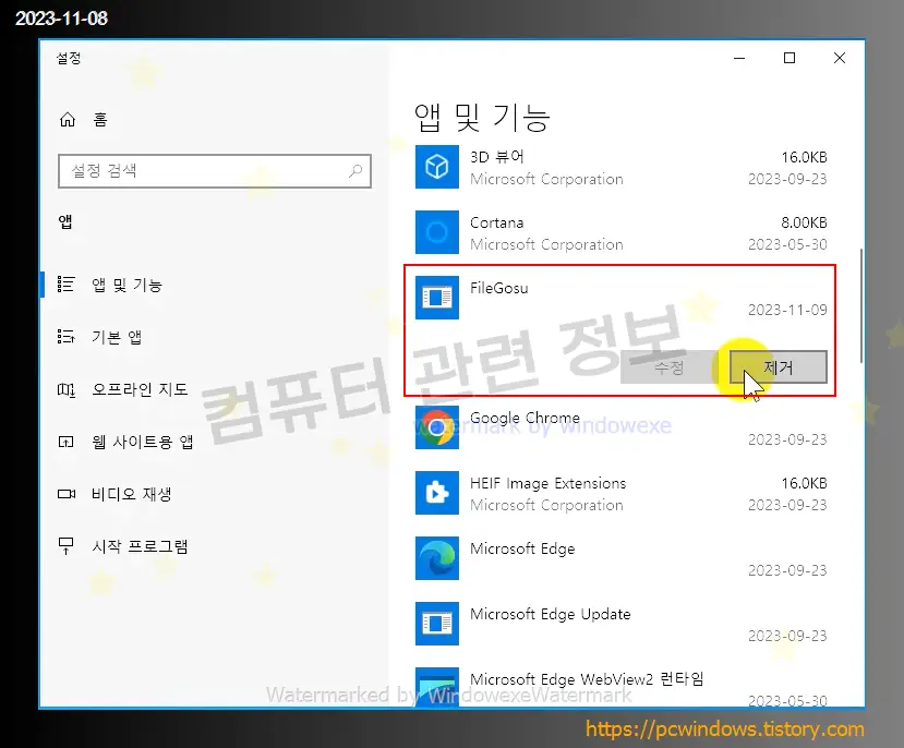 FileGosu 를 찾아서 제거 클릭