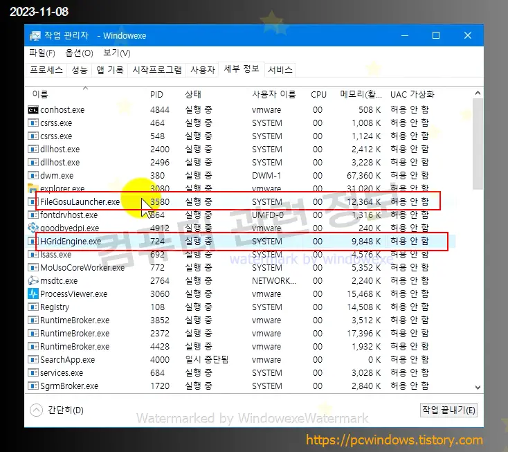 HGridEngine.exe , FileGosuLauncher.exe 프로세스는 부팅시마다 자동으로 실행됩니다.