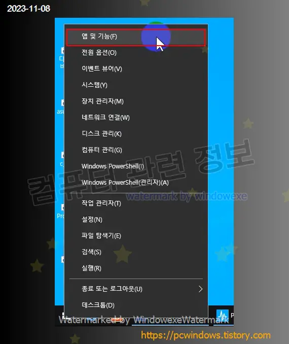 시작 - 우클릭 - 앱 및 기능 실행. (윈도우 11에서는 설치된 앱)