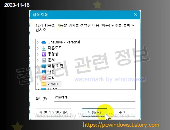 폴더를 선택하고 이동을 클릭하면 됩니다.