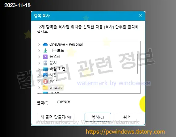 폴더에 복사를 클릭하면 나오는 화면입니다. 폴더를 지정하고 복사를 클릭하세요.