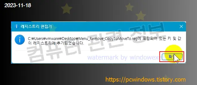 Menu_Remove_CopyToMoveTo.reg (메뉴 삭제 파일)