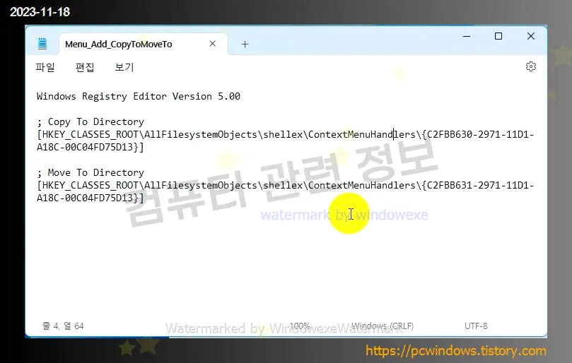 Menu_Add_CopyToMoveTo.reg (메뉴 추가 파일)