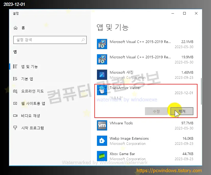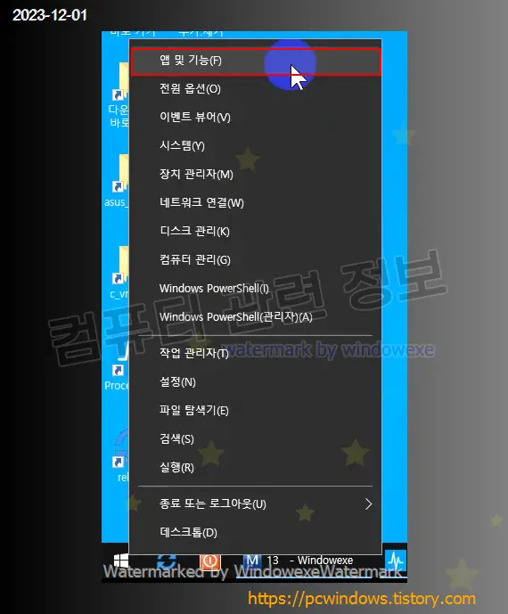 시작 - 우클릭 - 앱 및 기능 실행. (윈도우 11에서는 설치된 앱)