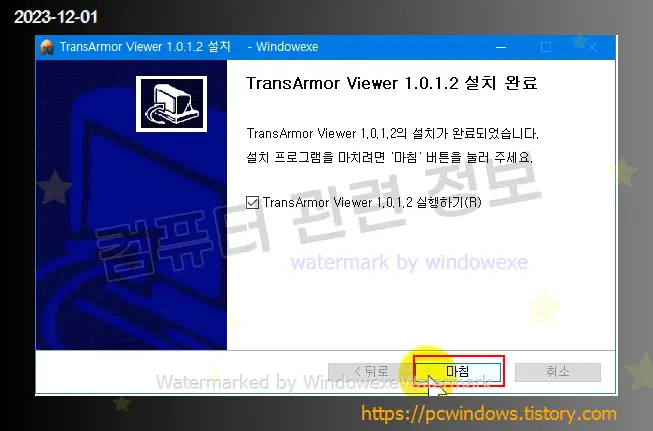 프로그램 설치가 완료되었습니다. 마침 클릭