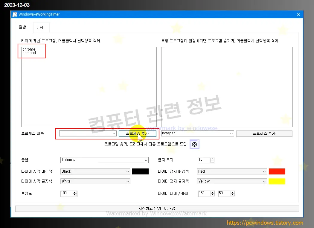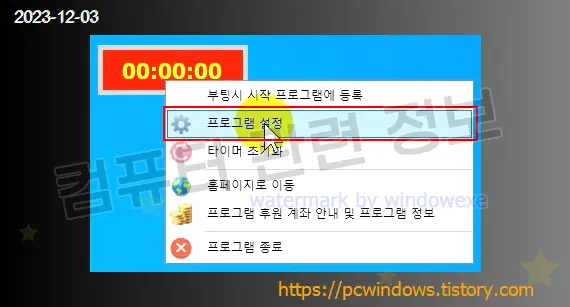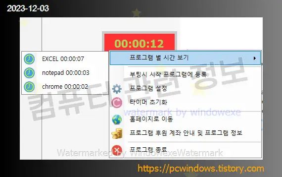 사용자가 지정한 프로그램이 활성화되면 타이머가 시작됩니다.