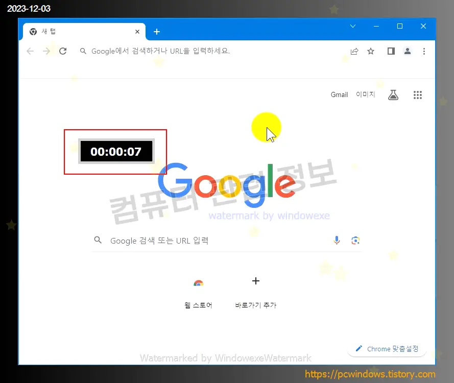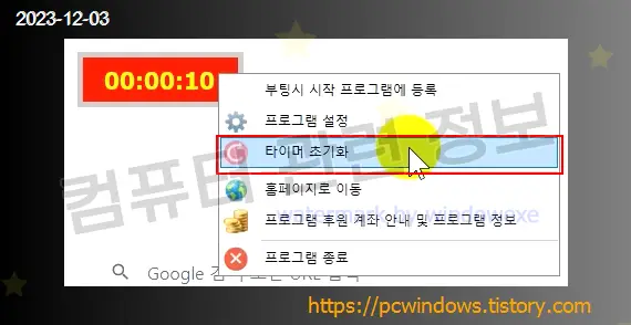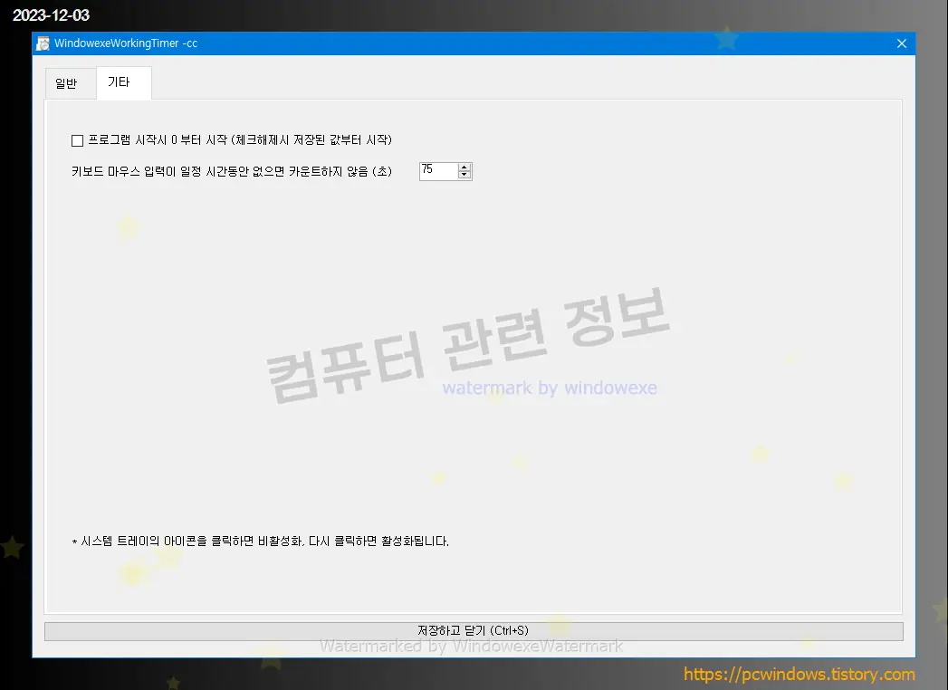 키보드 마우스를 일정한 시간동안 사용하지 않으면 타이머는 중지됩니다.