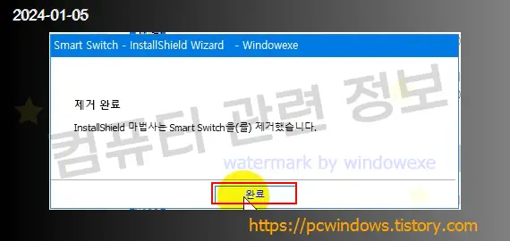 프로그램이 정상적으로 제거되었습니다. 완료 클릭.