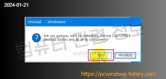프로그램을 삭제할건지 물어보는데 예 클릭.