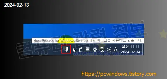 Host Process for Windows Service에서 마이크를 사용하고 있습니다. 이렇게 풍선 도움말이 표시되네요.