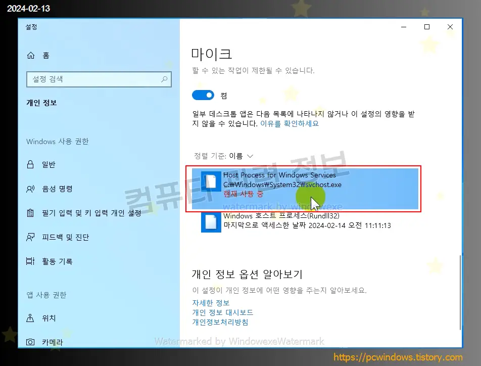 Host Process for Windows Service 프로세스(svchost.exe)가 마이크를 항상 사용하는 경우에 해제를 하는 방법에 대해 알아보겠습니다.