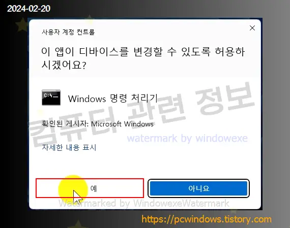 사용자 계정 컨트롤 허용 메세지가 나오면 예를 클릭하세요.
