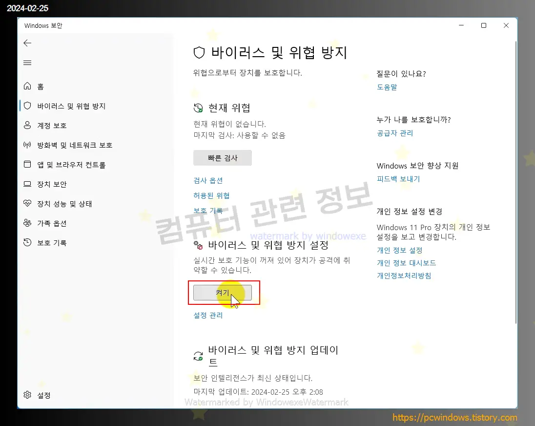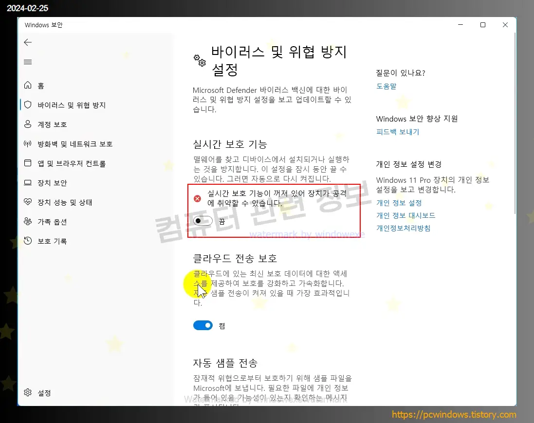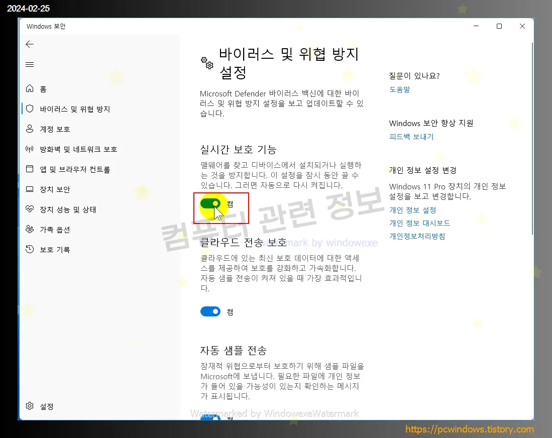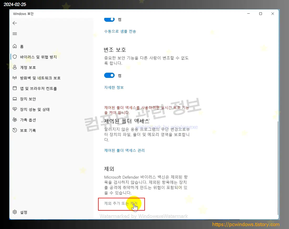 3. 윈도우 디펜더 실시간 감시 기능 끄고 예외 프로그램으로 추가