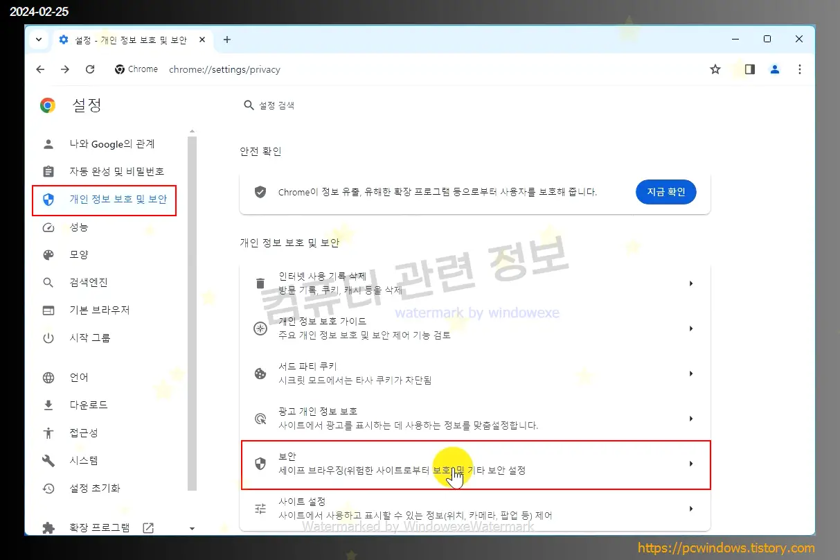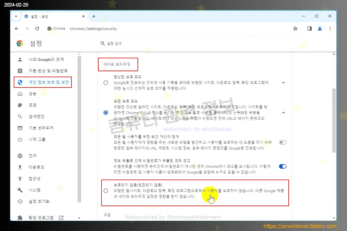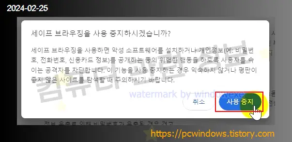 1. 크롬 웹브라우저의 세이프 브라우징 해제 방법입니다.