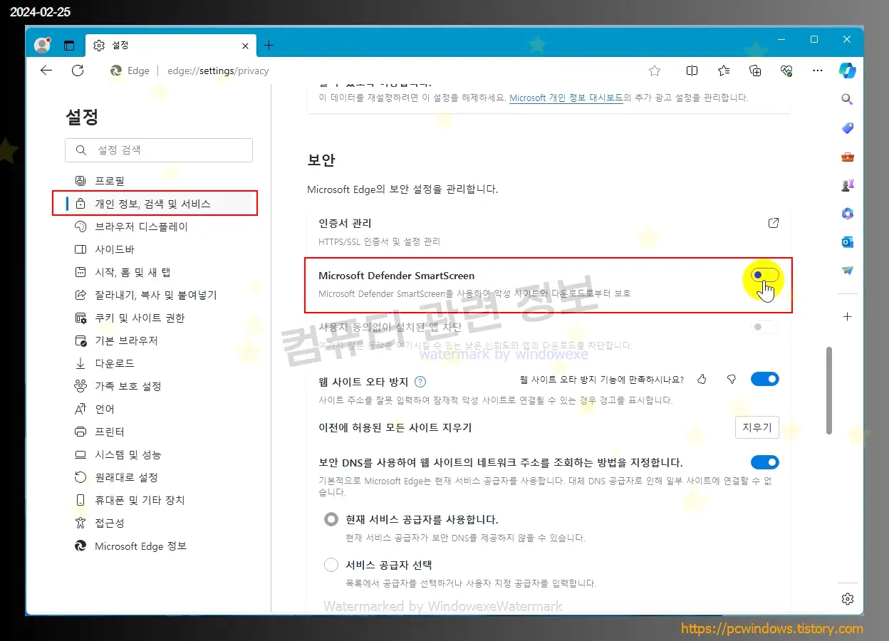 2. 마이크로소프트 엣지 웹브라우저 디펜더 스마트 스크린 끄기