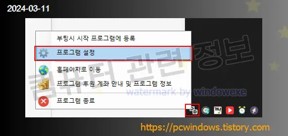 작업 표시줄 오른쪽 시스템 트레이에 DD 모양의 아이콘이 생깁니다.