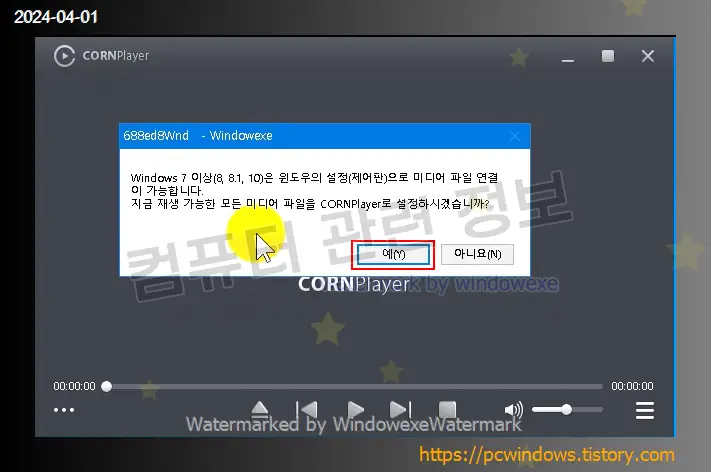 기본앱 선택 화면에서 CORNPlayerW 를 선택하세요.