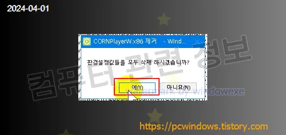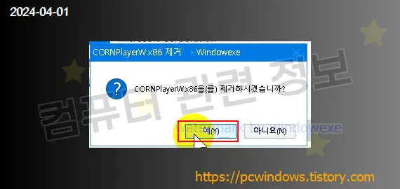 프로그램을 삭제할건지 물어보는데 예 클릭.