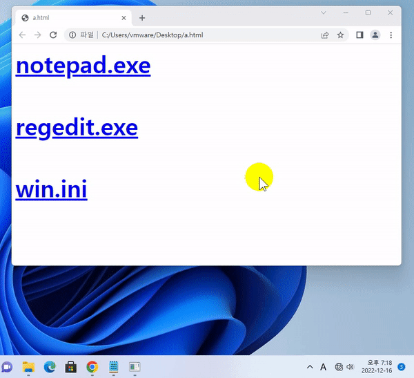 아래 풍선 메세지 클릭하면 다운로드된 파일이 탐색기로 열립니다. (파일 실행이 아님)